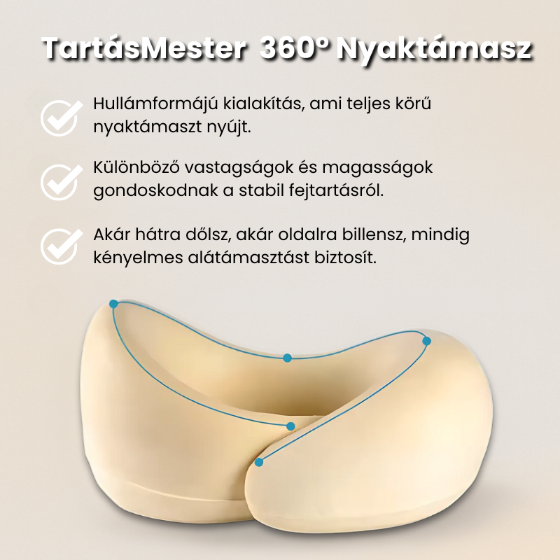 Ismerős az érzés, amikor egy hosszú út után nyakfájással szállsz ki a repülőből vagy a buszból? Az órákig tartó ülés közben a fej előre- vagy oldalra billen, a nyakizmok folyamatosan feszülnek, ami kényelmetlenséghez és fájdalomhoz vezethet. A legtöbb hagyományos megoldás, kabát, sima párna, csak pillanatnyi enyhülést ad.